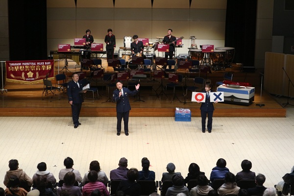 「山梨県警察音楽隊ふれあいコンサートinふえふき」が1月24日(土)14:00から笛吹市スコレーセンターにて開催されました。当日の様子を掲載いたします。